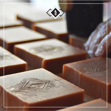 コールドプロセス製法は、非常に繊細な製造方法です。生産は小ロットに限られるため、一つひとつに細やかな注意が必要となります。石けんは「生きた素材」であり、熟成を重ねることで変化していきます。色や質感、形状も少しずつ変わっていくため、繊細な性質を理解した上で、適切なケア・保管・使用が求められます。